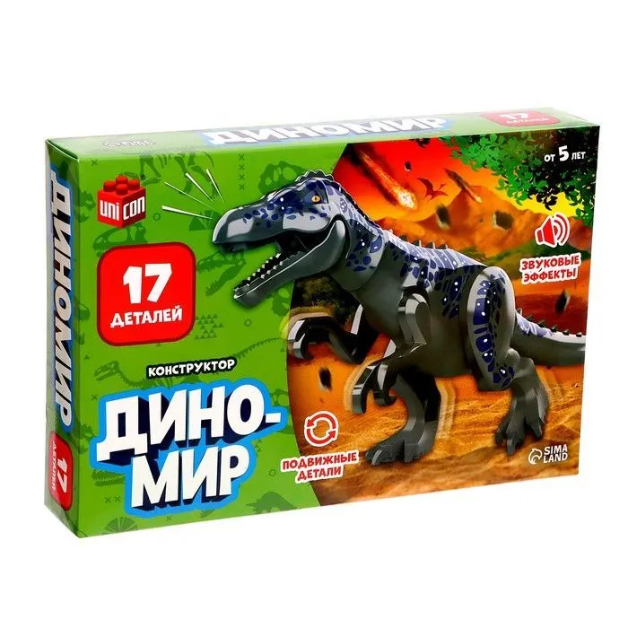 Конструктор UNICON "Диномир", 17 деталей, тиранозавр, звуковые эффекты   7761144 купить