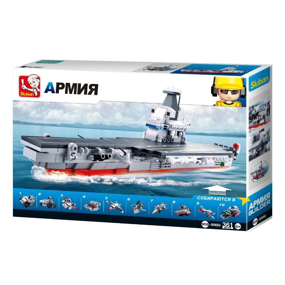 Авианосец + 10 едениц перевозимого транспорта (33 см, 424 дет) Конструктор Sluban M38-B0662 купить