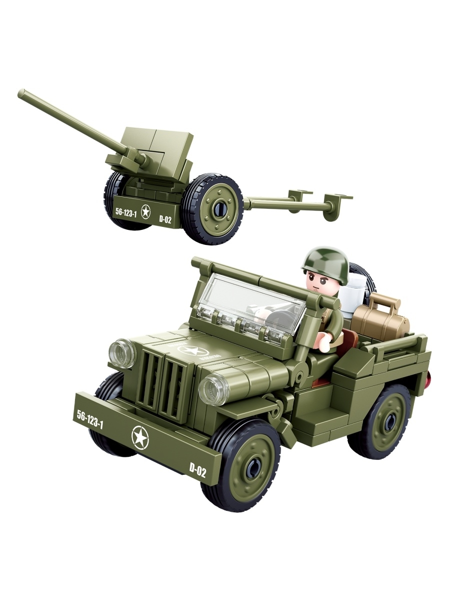 Sluban, Конструктор - Военный внедорожник с пушкой и фигуркой (серия WW2, 143дет), M38-B0853