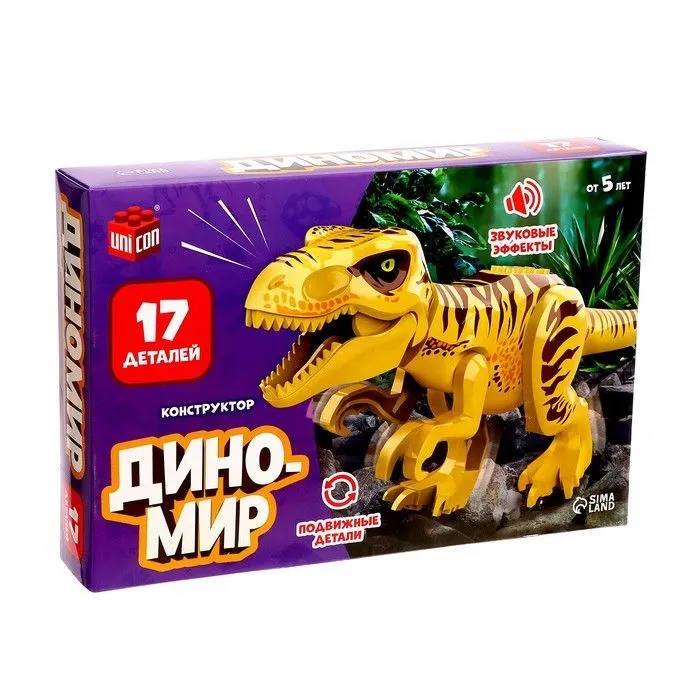 Конструктор UNICON "Диномир", 17 деталей,  спинозавр и паразауролоф, звуковые эффекты   7761122 купить