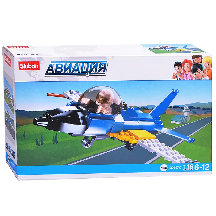 Конструктор самолет истребитель, Sluban с фигуркой, серия Авиация, M38-B0667C купить