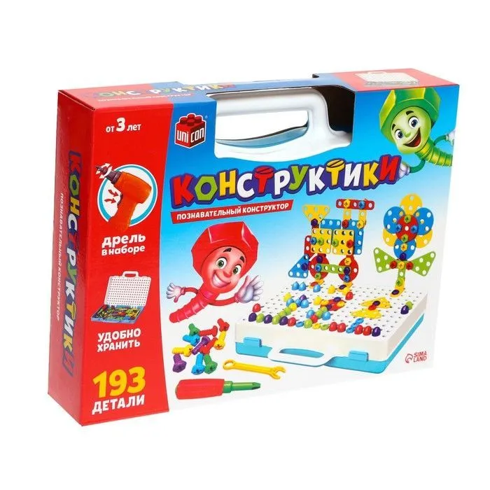 Конструктор винтовой "Конструктики", 193 детали, с шуруповертом №Sl-02675 4348348