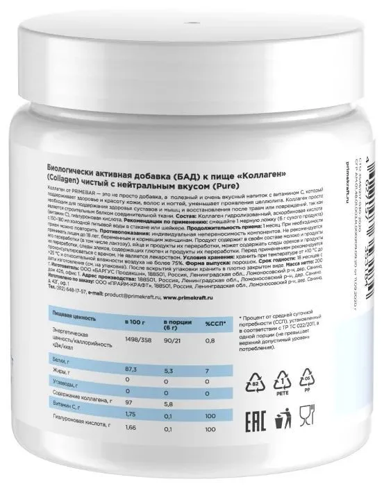 Содержание чистого коллагена в порции: 5 грамм.