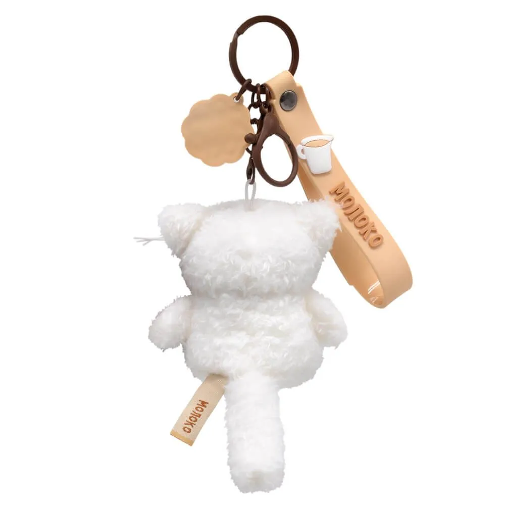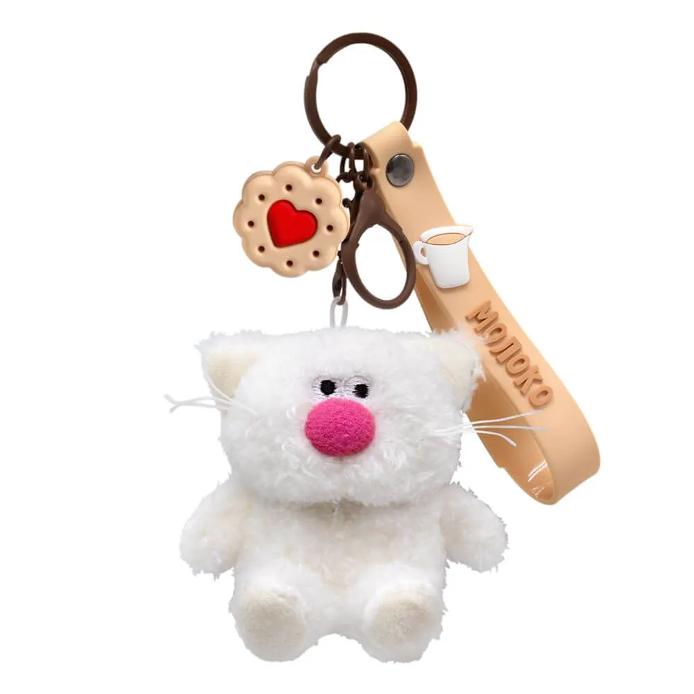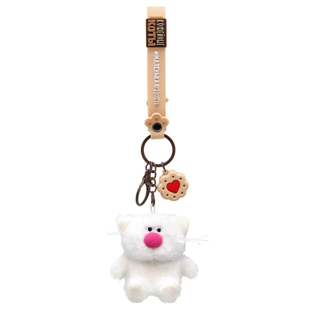 Кот брелок Молоко. Брелок сшит из тактильно приятного эко меха белоснежного цвета.