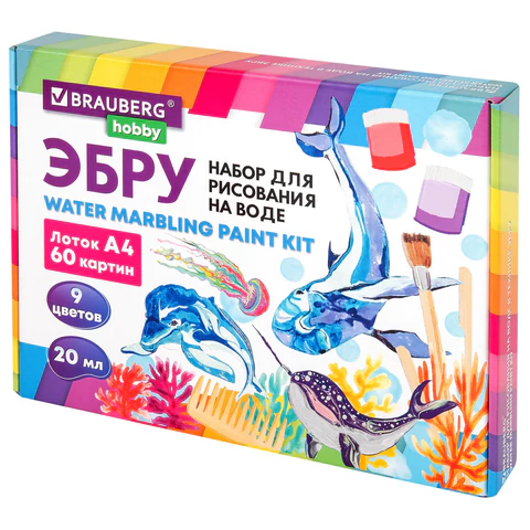 ЭБРУ набор для рисования на воде 9 цветов по 20 мл (60 картин), лоток А4, BRAUBERG HOBBY