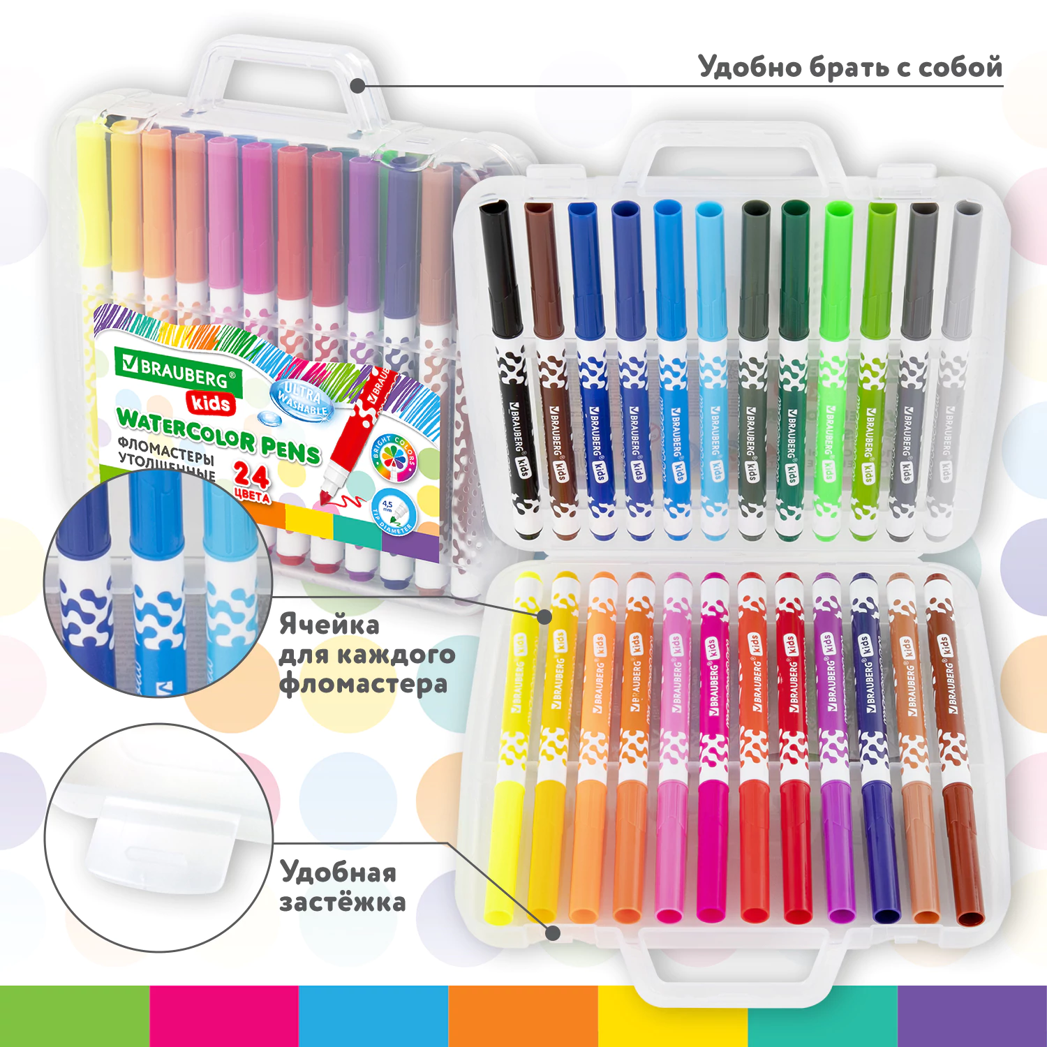 Фломастеры "BRAUBERG KIDS" в портфельчике утолщенные 24 цвета, вентилируемый колпачок,152186