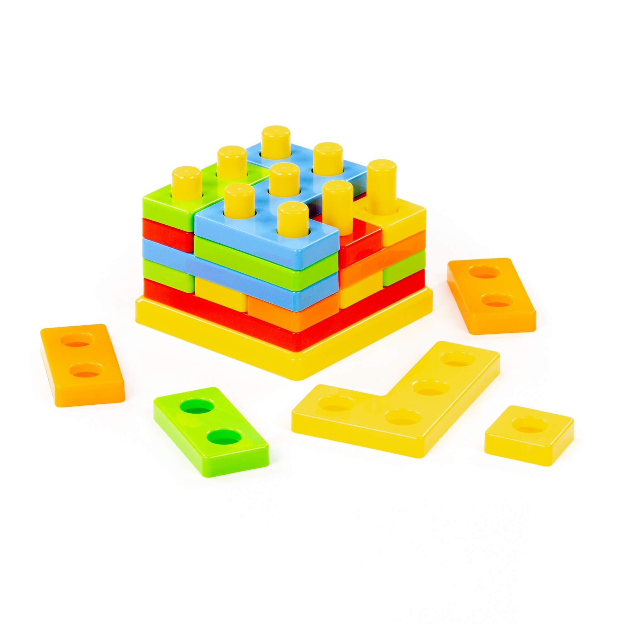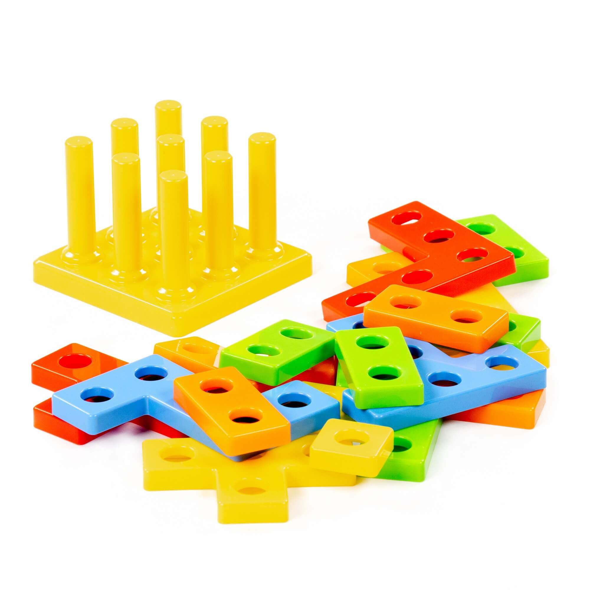 “3D пазл” №1 — это развивающая игрушка от фабрики «Полесье», представленная в новой форме. Конструкция представляет собой квадратную площадку со штырьками, на которые надеваются цветные пазлы с отверстиями . игра строится по системе тетриса: малышу необходимо решить логическую задачу и надеть детали с отверстиями на штырьки таким образом, чтобы конструкция не имела “пробелов”. Игрушка выполнена в ярких цветах, имеет округлую форму деталей. Изготовлен развивающий 3D пазл из качественных материалов, а значит, долго будет радовать малыша!