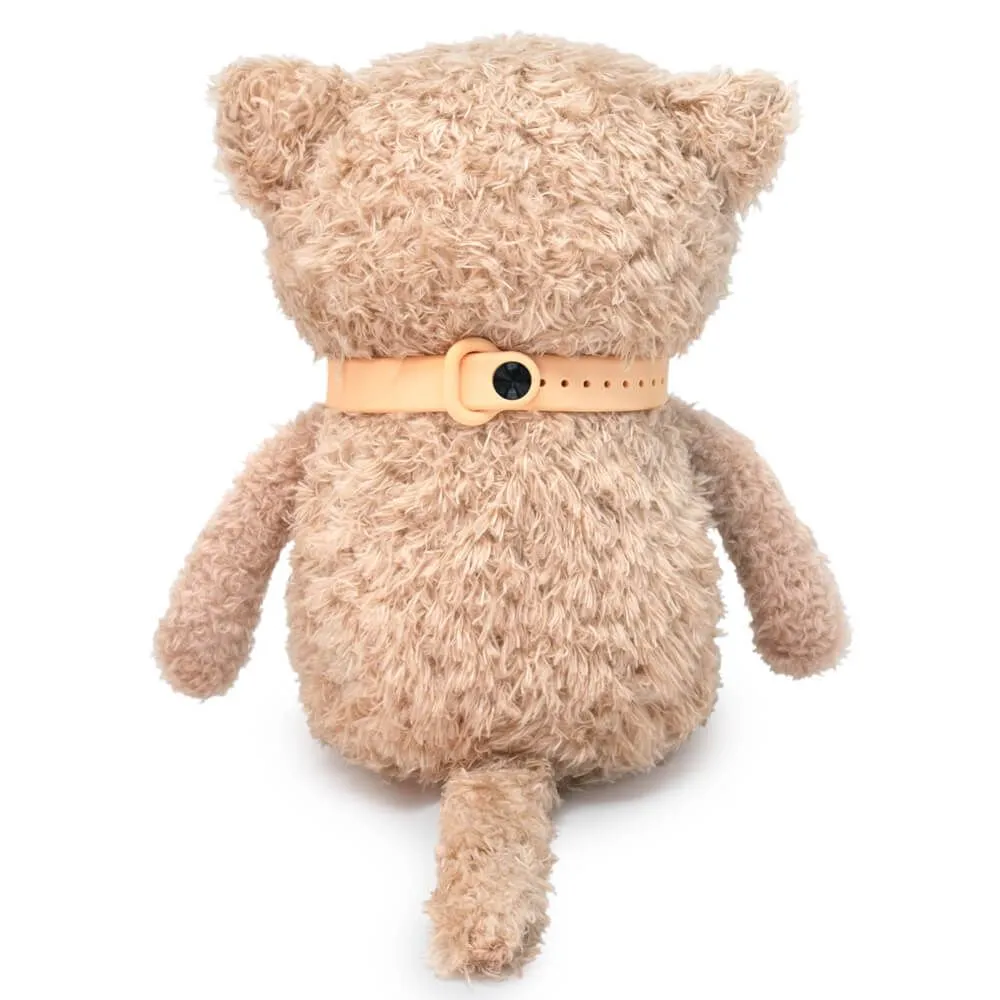 На шейке у котика силиконовый чокер с названием и небольшим подвесом в виде чашечки с какао.