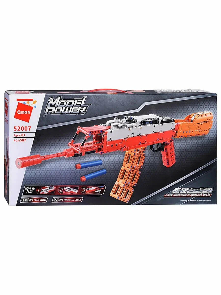 Серьёзный проект для настоящего конструктора! Конструктор Qman «Автомат» — это масштабный и детализированный набор, позволяющий собрать внушительную модель автоматического оружия из 587 деталей. Готовая модель отличается высокой степенью реализма, надёжностью конструкции и оснащена функцией стрельбы мягкими патронами.