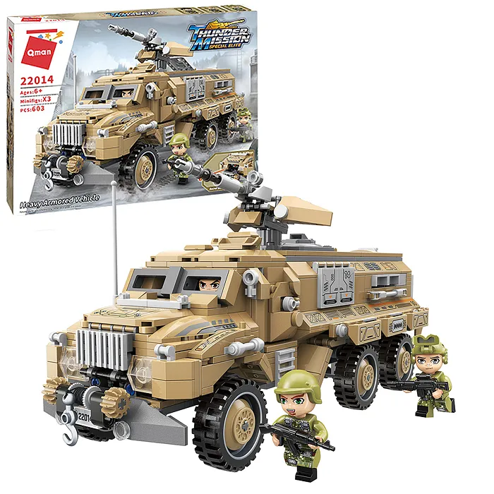 Создай непобедимую бронированную машину! Конструктор Qman «Бронь» — это мощный и сложный набор для сборки масштабной модели современной бронетехники. Из 603 деталей предстоит построить крупную, детализированную машину, напоминающую бронетранспортёр (БТР), боевую машину пехоты (БМП) или легкобронированный автомобиль, оснащённую функцией стрельбы из турельного пулемёта.