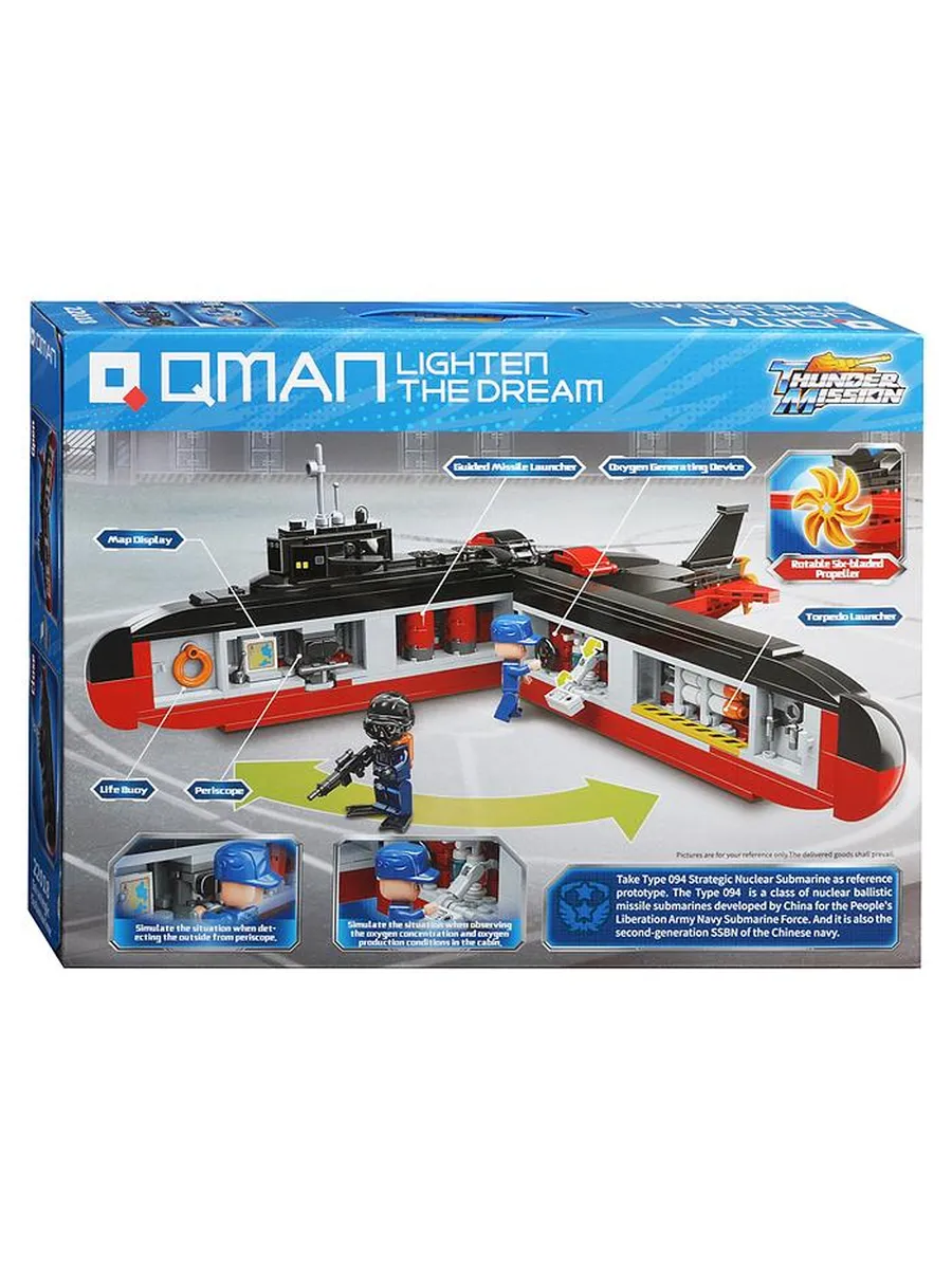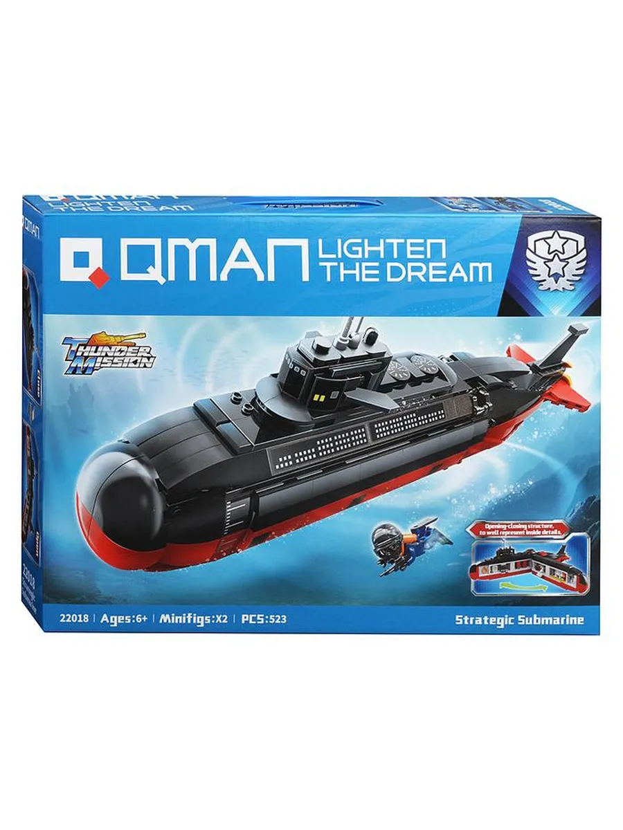 Погрузись на глубину и готовься к миссии! Конструктор Qman «Подводная лодка» — это сложный и увлекательный набор для сборки детализированной модели подводной лодки, оснащённой функцией стрельбы торпедами (мягкими патронами). Из 523 деталей предстоит создать внушительную модель, напоминающую современную атомную субмарину или футуристический подводный корабль.