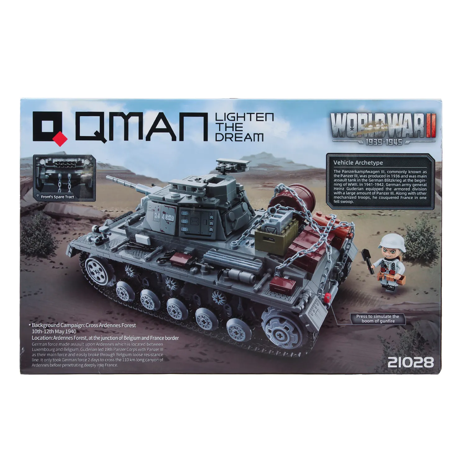 Абсолютный хит для опытных моделистов! Конструктор Qman «Танк» на 1058 деталей — это вершина сложности и детализации в серии. Этот мега-набор предназначен для создания невероятно крупной, максимально реалистичной модели современного основного боевого танка. Модель будет оснащена вращающейся башней, стреляющей пушкой, подвижными гусеницами и высочайшим уровнем внешней проработки.