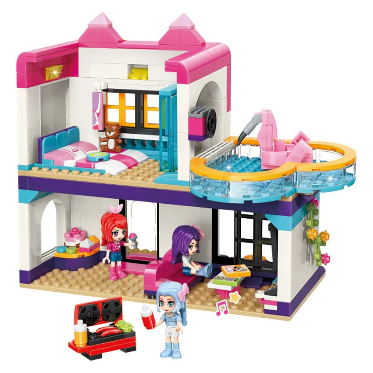 Конструктор Qman «Вилла» (447 деталей) — это стильный двухэтажный домик с полноценной меблировкой и уютным интерьером. В комплекте: кровать, диван, стол, стулья, шкаф, кухонный гарнитур, картины, вазы, лампы, коврики и 3 минифигурки — идеальные героини для ролевых игр. После сборки получается завершённая игровая сцена, которую можно использовать как самостоятельную модель или как центр большого кукольного мира.