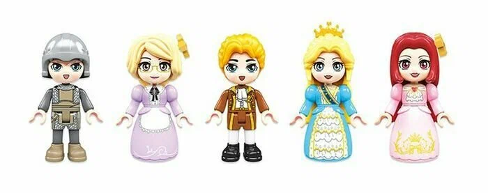 Минифигурки: 5-8 фигурок (принцесса, принц, король, королева, слуги, конь).
