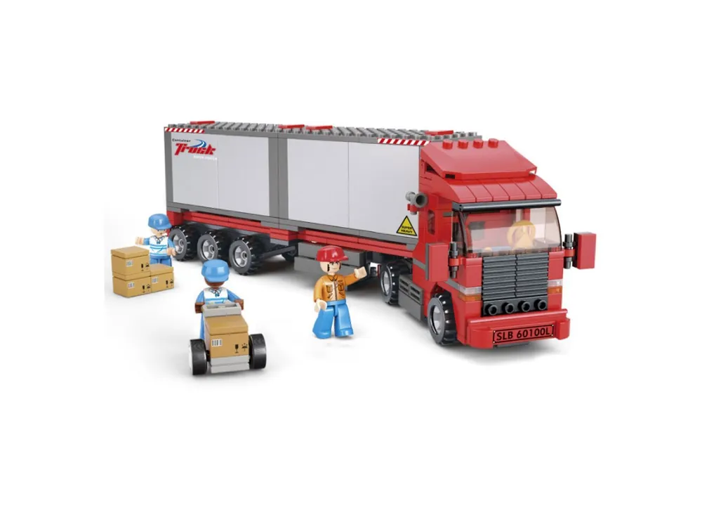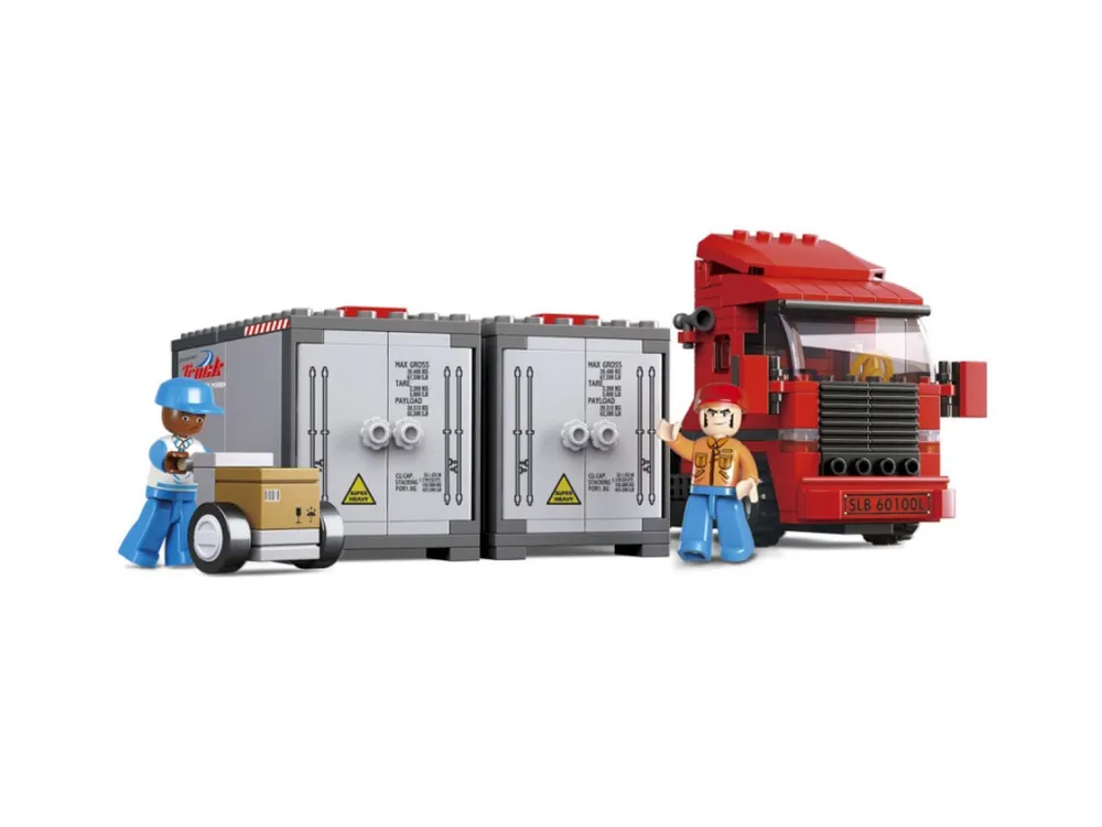 Трейлер | Контейнеровоз | Красный грузовик (345 дет.), Конструктор Sluban, M38-B0338