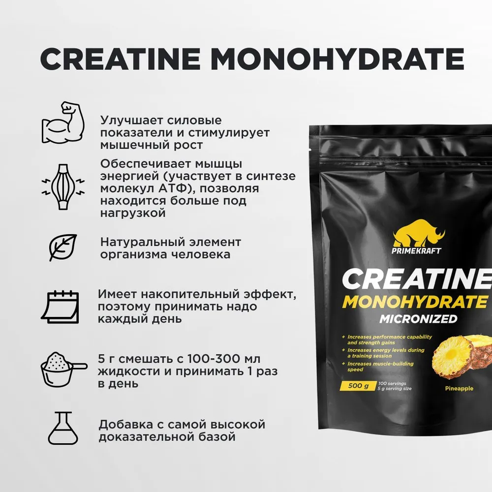 Креатин моногидрат Prime Kraft Creatine Monohydrate 100% ананас, 500 гр