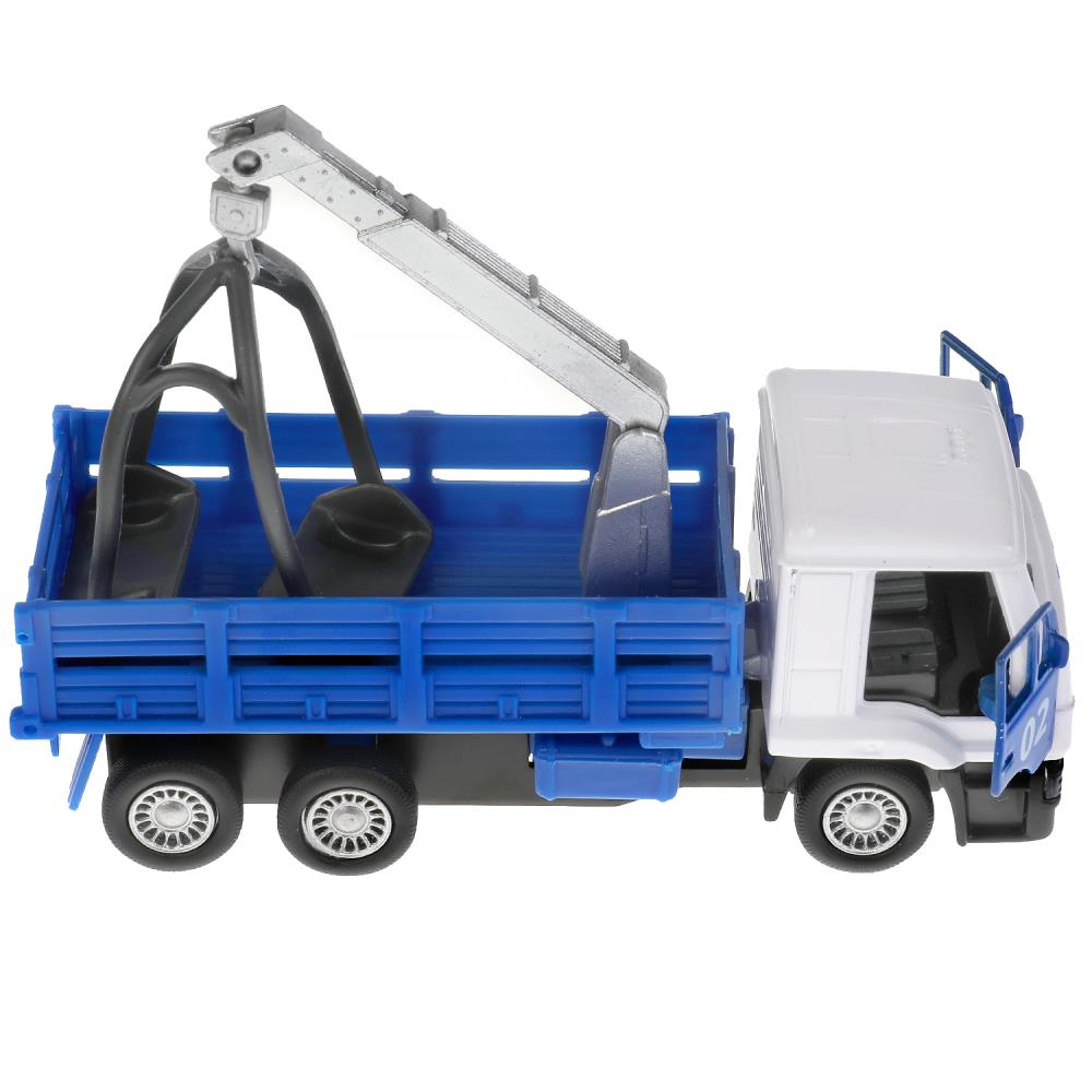 Большая модель представляет собой точную копию КамАЗа-эвакуатора длиной 12 см. У неё открываются двери кабины и есть подвижные элементы — опускающаяся платформа (трап) и, возможно, подвижный крюк, что позволяет реалистично моделировать процесс погрузки и эвакуации автомобилей .