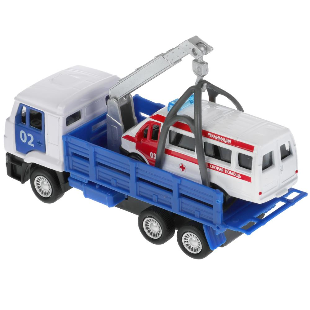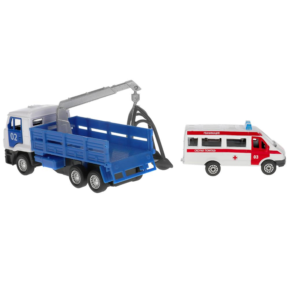 Машинка металлическая инерционная Технопарк, KAMAZ эвакуатор, 12см + скорая 7,5 см