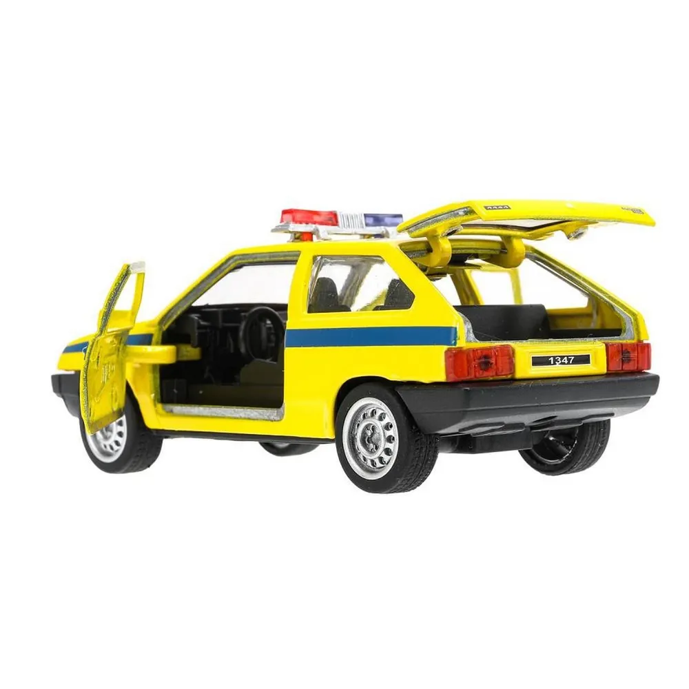 Машинка металлическая Технопарк Милиция LADA-2108 Спутник (12см, инерционная, двери, багажник, свет-звук)