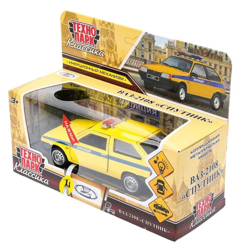 Коллекционная металлическая модель Милиция LADA-2108 Спутник Технопарк - прекрасный подарок для маленького автолюбителя.