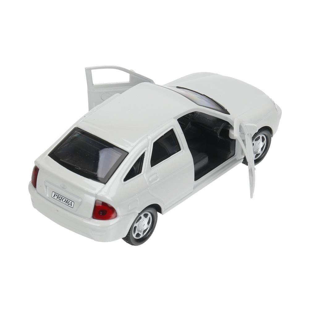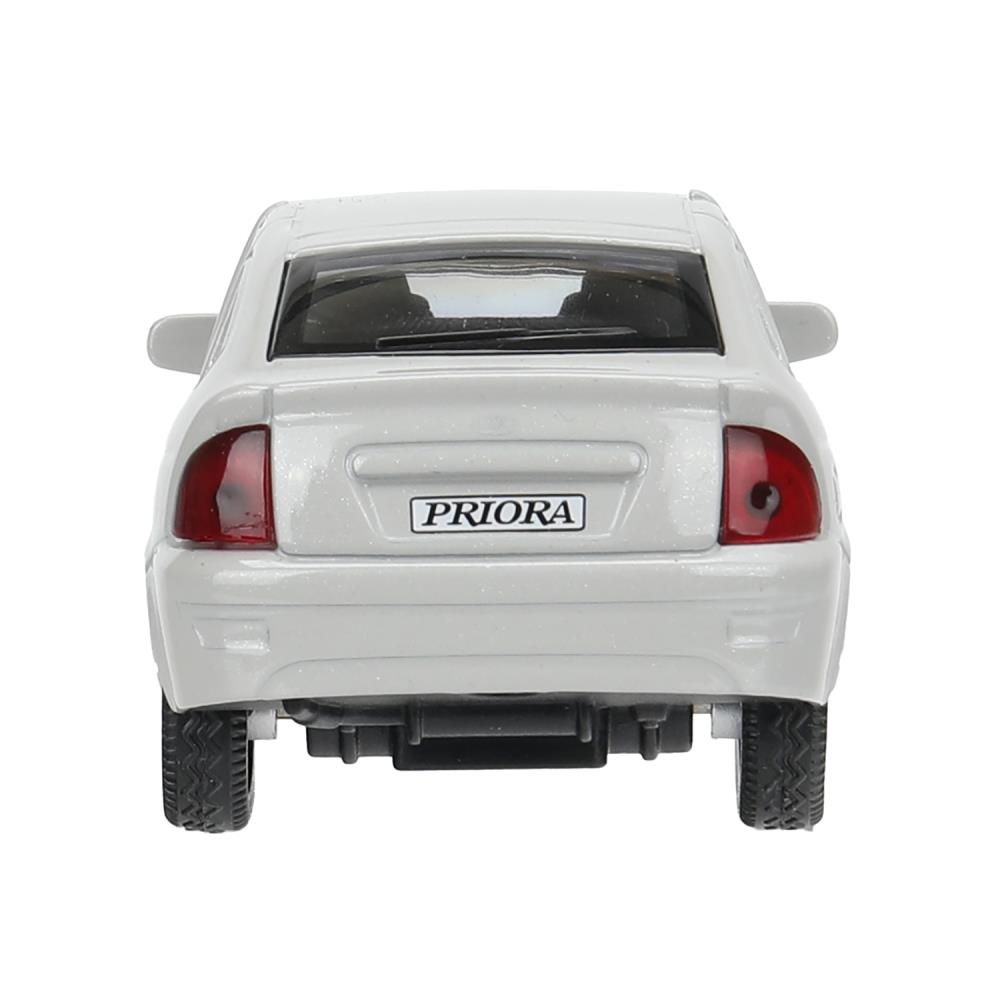 Игрушка сочетает в себе прочный металлический корпус с узнаваемыми чертами кузова LADA Priora и надёжный инерционный механизм. Отличительные черты модели — выраженная решётка радиатора, чёткие линии кузова, пластиковые фары и колёса с резиновыми шинами для реалистичного сцепления с поверхностью.