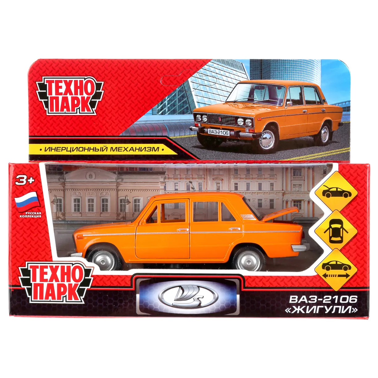 Машинка металлическая инерционная Технопарк ВАЗ-2106 Жигули, 12 см, оранжевая