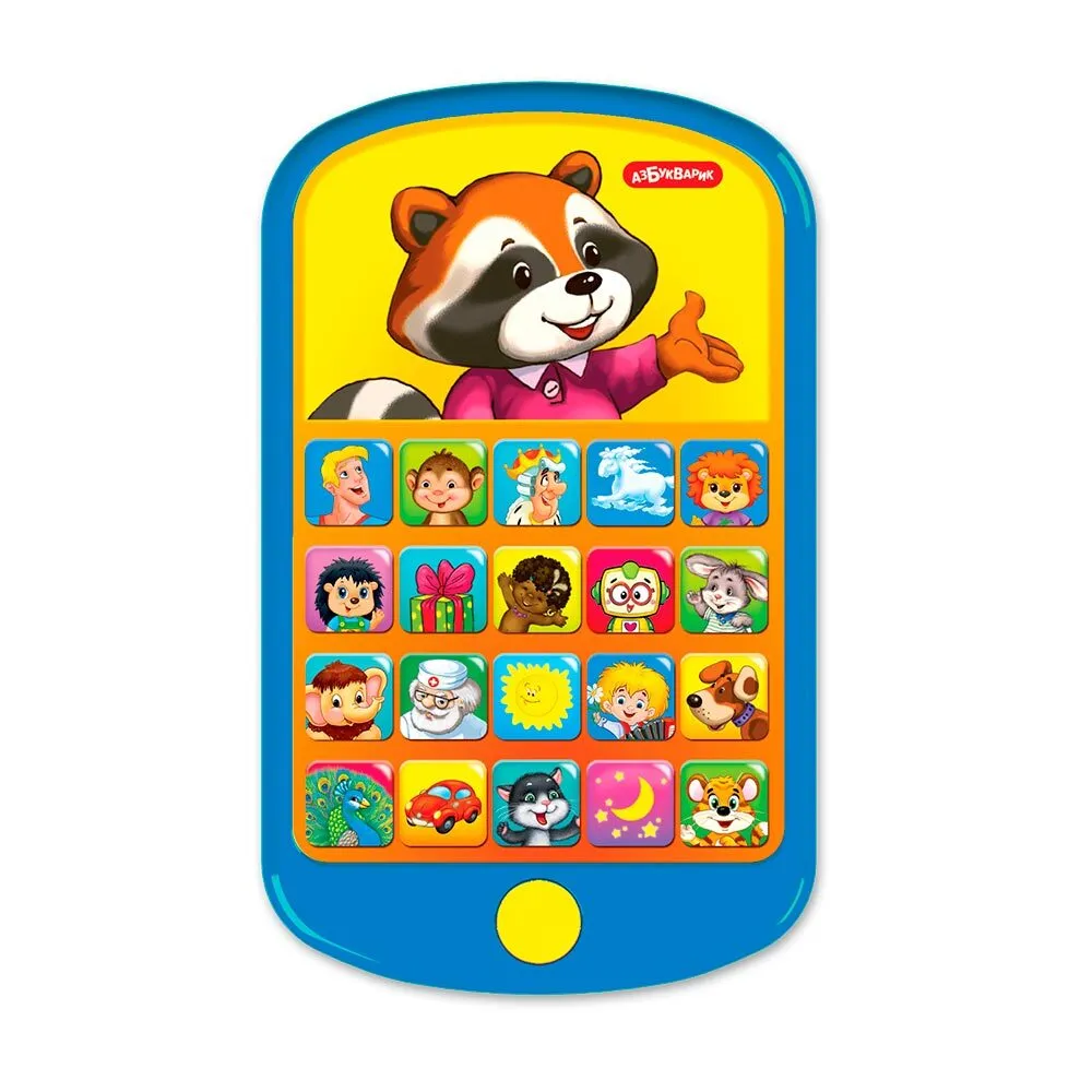Милый енотик приглашает малышей петь, танцевать и веселиться! Нажимая на яркие кнопки этого модного смартфончика, ребенок сможет послушать более 20 детских хитов: