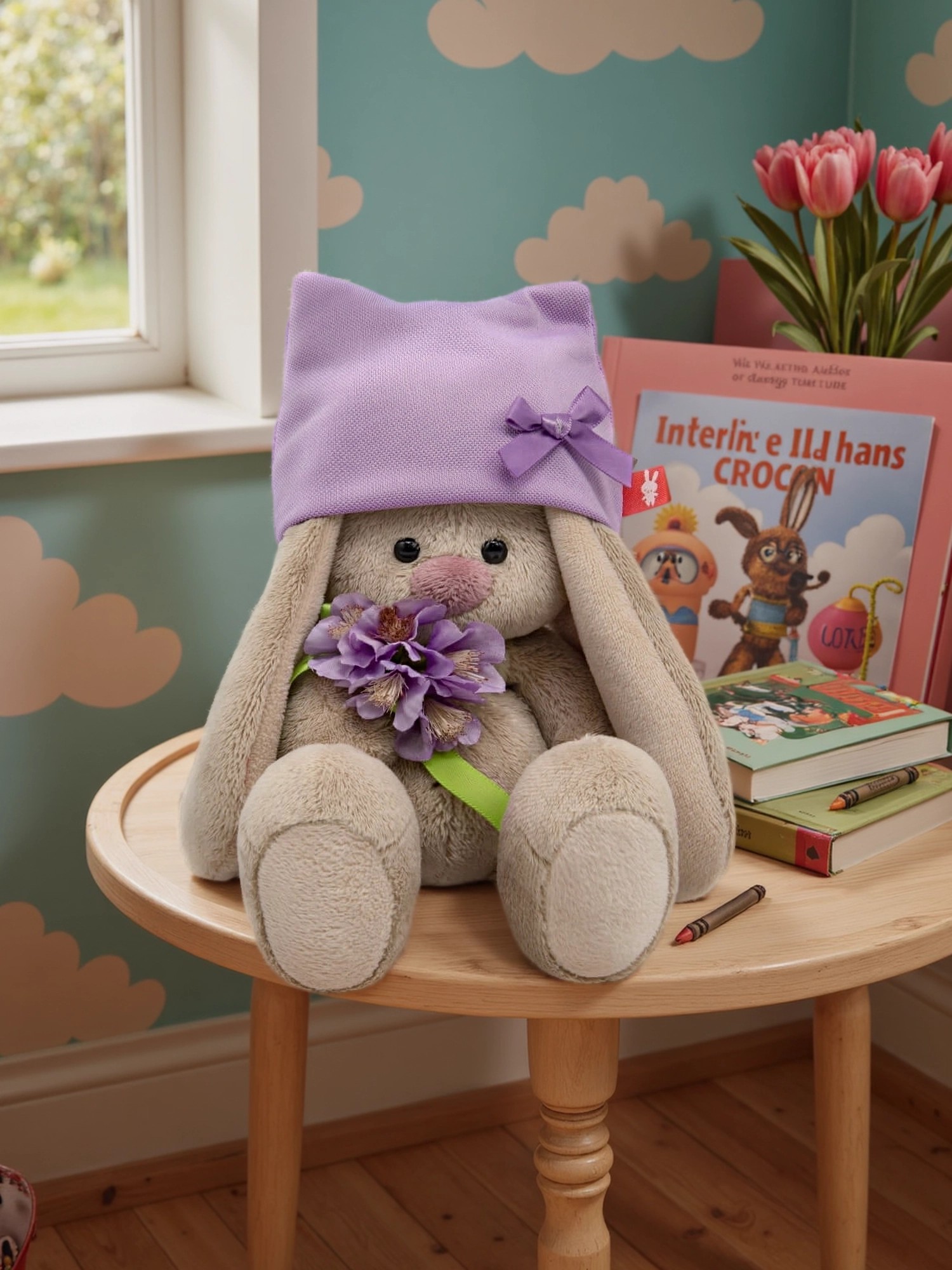 Очаровательный малыш с самыми добрыми намерениями! Зайка Ми от Budi Basa в образе милого малыша в шапочке и с букетиком цветов — это воплощение нежности, чистоты и трогательной заботы. Этот образ создан, чтобы дарить улыбки, тепло и ощущение весенней свежести в любое время года.