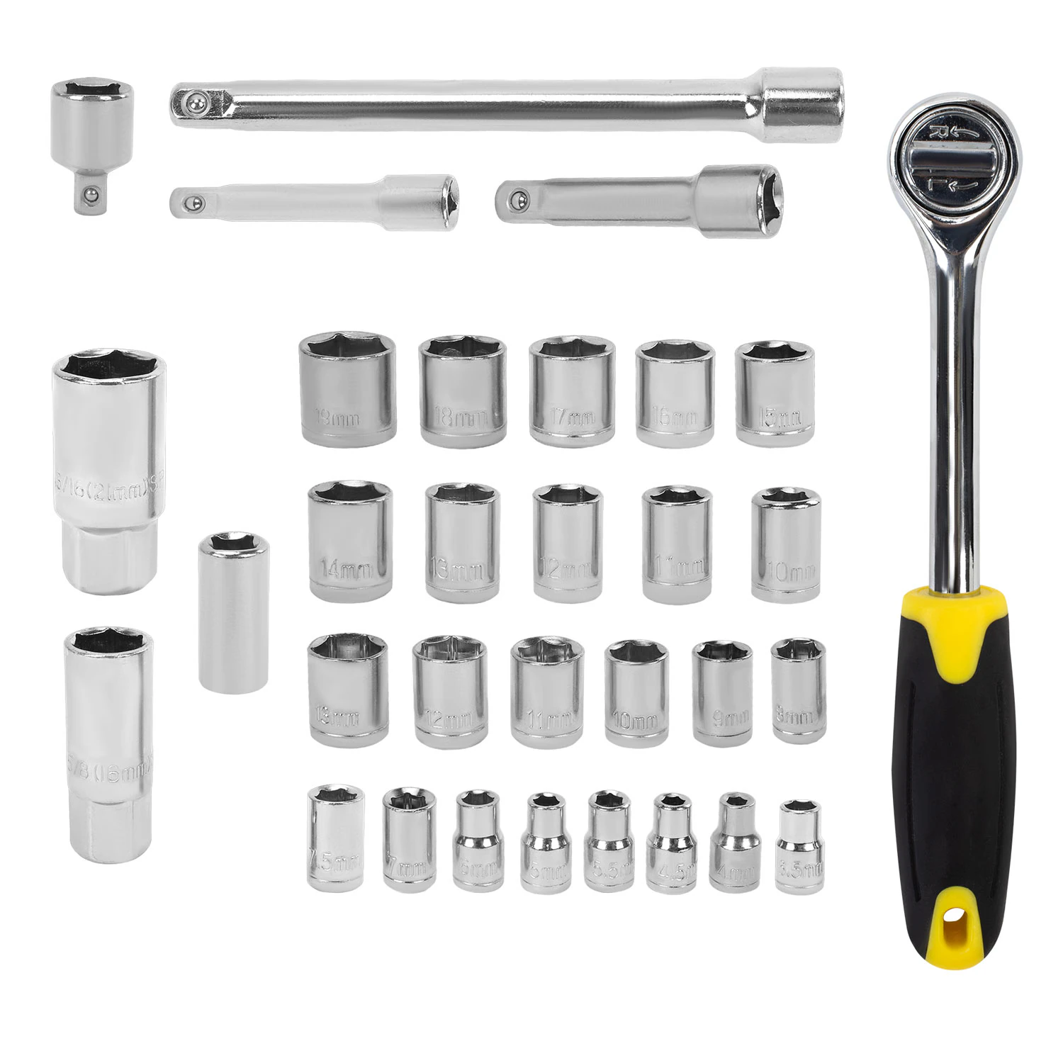 Трещоточные рукоятки (трещотки): Для каждого из приводов (1/4", 3/8", 1/2").