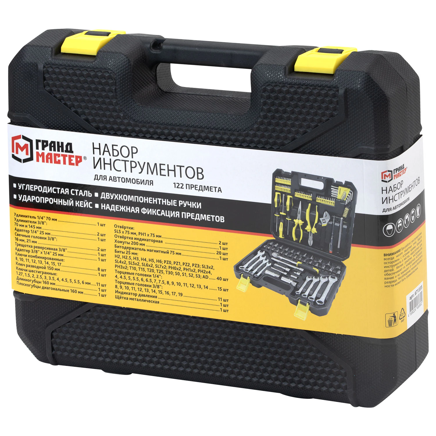 Набор инструментов для автомобиля,122 предмета, пластиковый кейс, ГРАНДМАСТЕР
