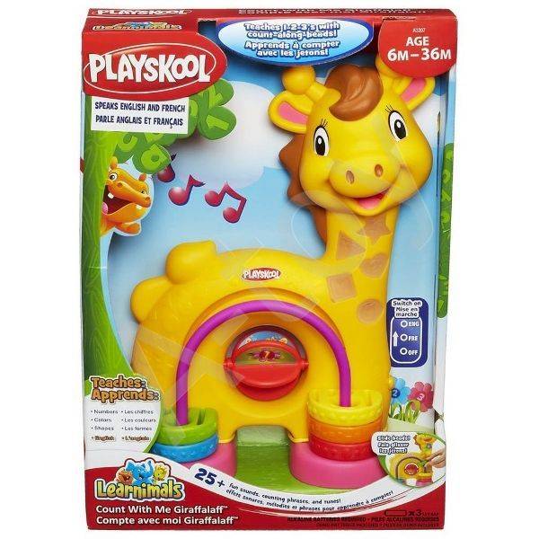 Когда ребенок перебирает колечки, нанизанные на ножки жирафа, жирафик считает от одного до пяти. Во время счета загораются лампочки разных форм с нарисованными на них цифрами.