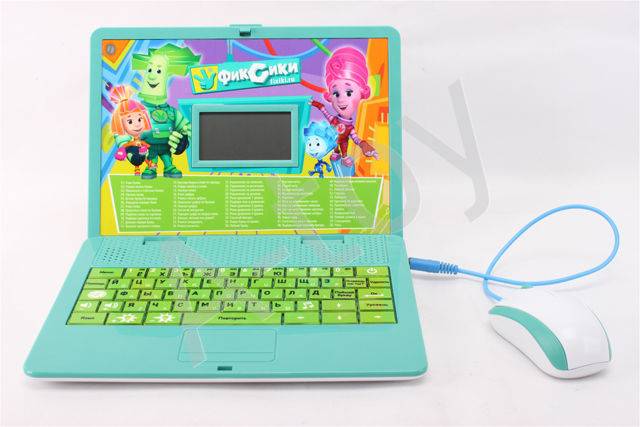буквы - слова - цифры - математика - логика - музыка - часы - игры - рус/En Компьютер работает от 3-х батареек типа АА (входят в комплект).