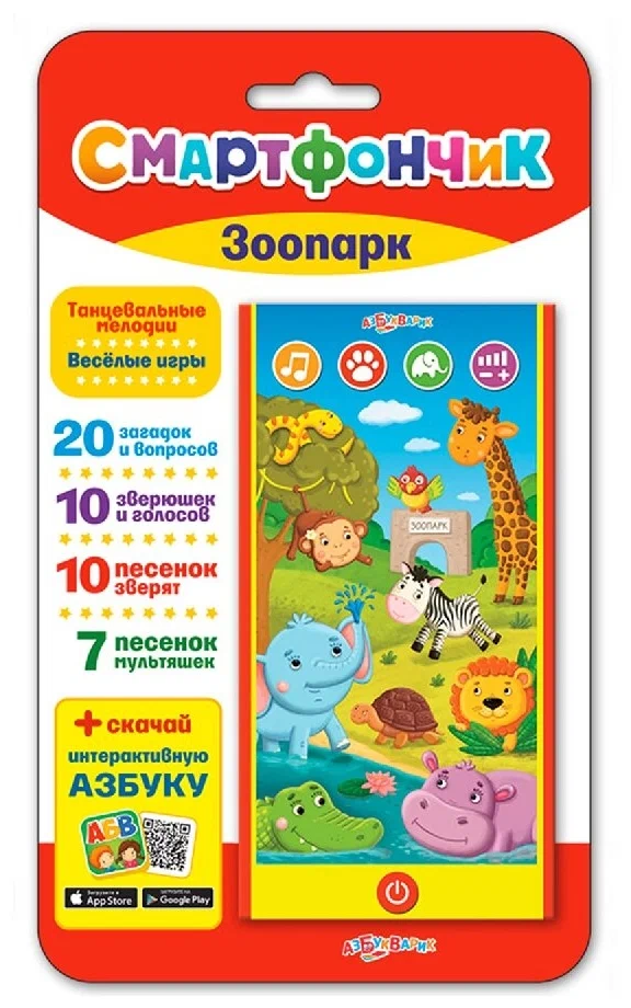 Ваш малыш любит животных? Тогда детский смартфончик «Зоопарк» от компании «Азбукварик» станет отличным подарком ребенку.