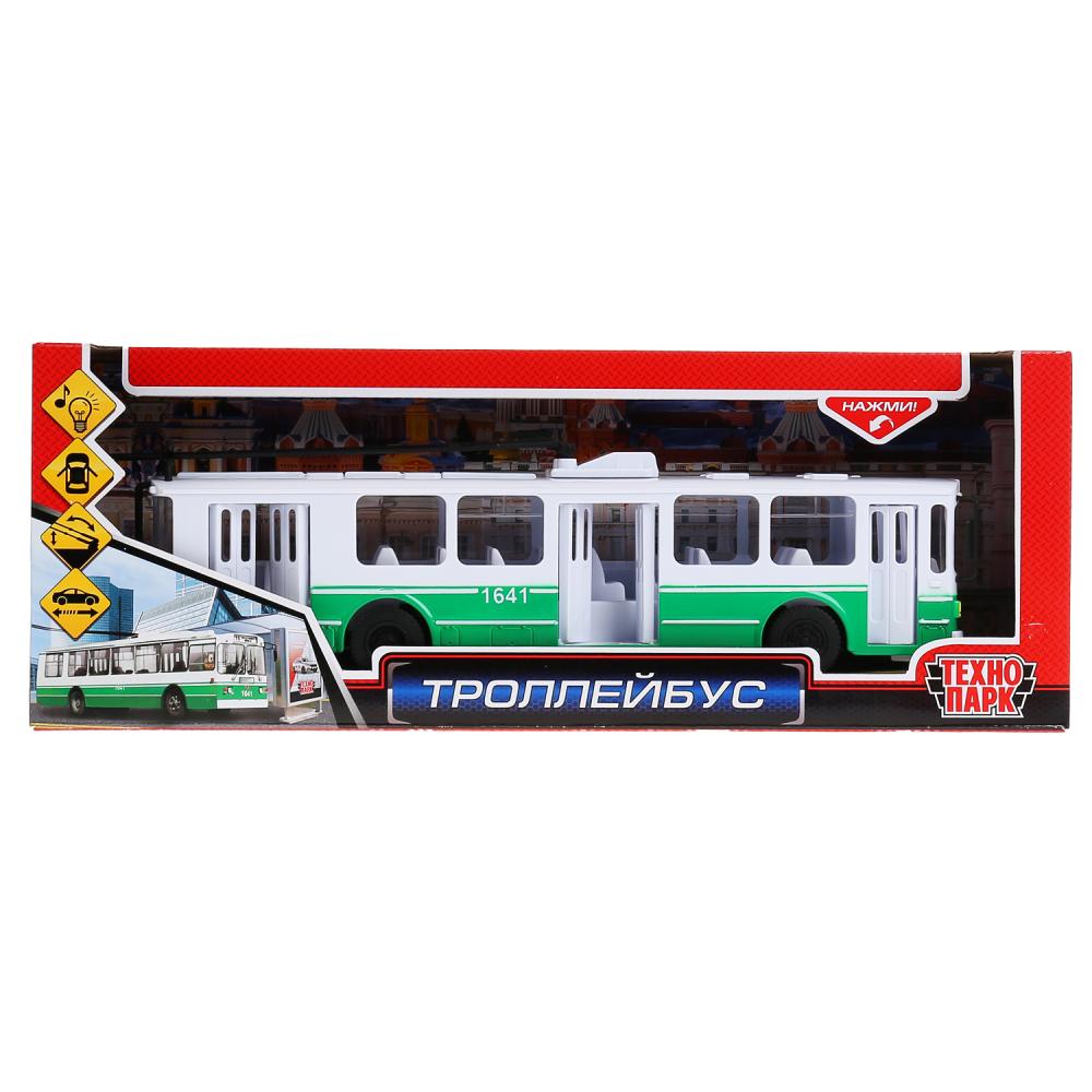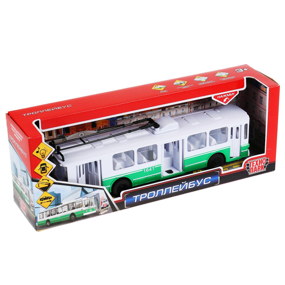 Троллейбус инерционный, открываются двери, 31,5 см, свет и звук, Технопарк, SB-14-02-GN-OB.